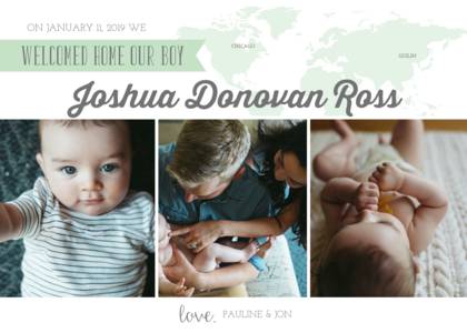 When you make your own custom adoption announcements, you can include as many personal details as you like. A good place to start is with the child's name, length, weight, and adoption date. You may even want to include the birth date and time for a higher level of personalization. If it’s a boy, you will want a baby boy announcement color to match. With a single photo, you can create a stunning appearance for your card. In addition to single-photo designs, you can choose a three-photo design, allowing you to pick several of your favorite photos. Mixbook offers an easy customization process that allows you to begin with a blank slate. If you prefer, you can choose one of the many themed designs and customize it by modifying different aspects of it. You can reflect your style and personality in so many different ways from the type of corner shape you select to the colors on your card to the number of photos you choose to display. You even have choices in photo orientation, making it easy to put your photo in the best presentation. These custom cards come in two sizes - 5 x 5 inches and 5 x 7 inches, making them suitable for first-class mailing. A crisp envelope accompanies each card.