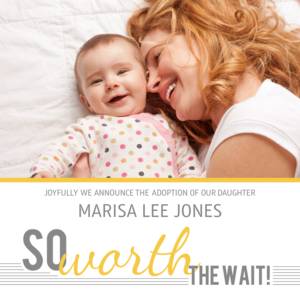 Whether it’s a baby girl announcement or you are adopting a boy, celebrate your new family member or members with Mixbook adoption announcements. At the end of the long process of adoption often much longer than 9 months you’ll be more than ready to spread your incredible news with custom baby adoption announcements. Start a new photo book at the same time, then upload a new photo or series of photos each month. By the end of your baby’s first year, you’ll have a beautiful memento that you’ll cherish forever.