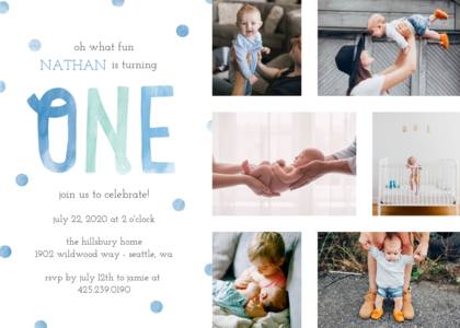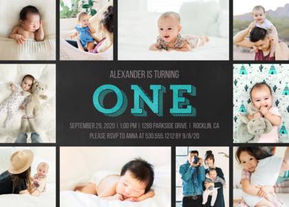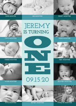Baby's first birthday is a special day, and it should be celebrated in style. Your little bundle of joy is now one year older and bigger after having gone through a year of memorable firsts. Plus, life is about to get a whole lot more interesting as your tiny tot begins to discover just how much there is to do. Since the first birthday is such a big deal for your entire family, you may want to celebrate your little boy or girl turning one year older with a custom first birthday card online. Not only can you handpick a theme, size, and trim style for the card, but you can also customize baby's first birthday photo invitations in other ways to create a design made from love. From the number of photos you intend to display to the background color you select, numerous options exist for personalizing this invite so that it is specific to your child's favorite things in life. You may want to browse through the entire collection before making a selection unless you already have an idea of what you would like to include as you make your own baby's first birthday card.
