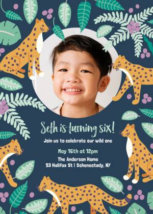 Celebrate your son's next birthday in style with a personalized invitation that matches the theme of his party. Choose his favorite sport, superhero, cartoon character, or animal and make a card that he will always remember. You can design his birthday party photo invitations with a large number on it to represent his age, a colorful photo that has him wearing his sports jersey, or an entire collage of photos that portray his journey over the last year. Please browse through Mixbook's existing collection of themed templates for boy's birthday party invitations or continue reading to learn more about everything that is available.