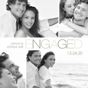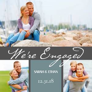 As you plan to share the news of your engagement, imagine the excitement of family and friends far and wide as they learn you are about to tie the knot. What better way to spread the news than with unique, personalized engagement announcement cards? Consider a wide selection of romantic designs to find one that truly captures your personalities as a couple. Choose an attractive card style that best complements your favorite photo or photos featuring you and your sweetheart. Your precious image featured in this engagement announcement will live on in the minds of your loved ones every time they think of you leading up to your special wedding day.Personalize your cards however you please--whether using Mixbook's thousands of free stickers and backgrounds, fine quality textures, or exquisite finishes. Engagement announcement paper choices include smooth matte, 100 lb. paper, or premium 110 lb. silk paper. Fancy little details like real foil embellishments lend a luxurious look and feel to your engagement announcements, adding a touch of sparkle and shine to match the glow on your smiling faces. These beautiful engagement announcements become cherished keepsakes for you and your loved ones to preserve in your scrapbooks forever!