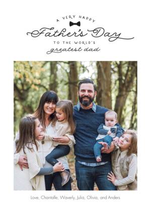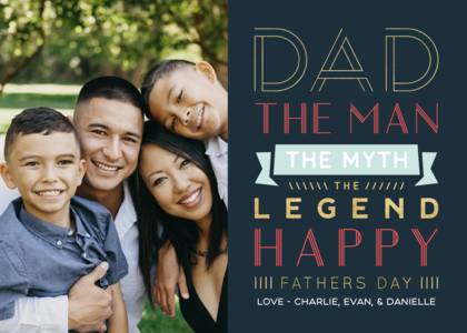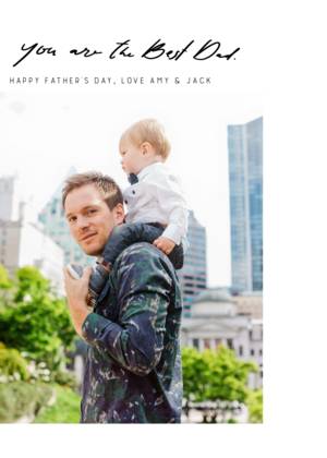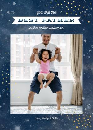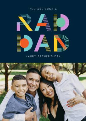 Personalized photo cards capture lots of emotions in one beautiful place. Premium printing renders flawless photos across fine quality cardstocks that stand the test of time. Make your own Father's Day photo card for your father, grandfather, stepfather, or father-in-law as a way to visually illustrate all the things you love about them. Choose fun themes for your cards that play into Dad's favorite things and his sense of humor or create an original, made to order photo card from a blank slate. Dress up your Father's Day photo card with custom art, stickers, and even real foil for an elegant touch.Father's Day Gift Ideas and Trends