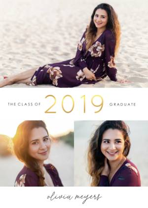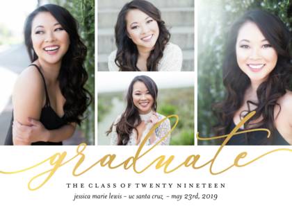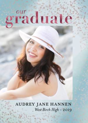 Make a huge impact with foil photo cards that really impress the recipient. A card with gorgeous foil typography - especially in a sea of other graduation invitation templates and it's the perfect way for moms, dads and grads to express pride in such a major accomplishment. A fun twist, check out the holographic graduation thank you templates that shine, sparkle or glitter (and give the graduate a chance to express his or her individuality at the same time).