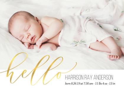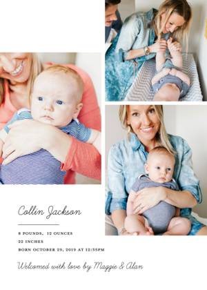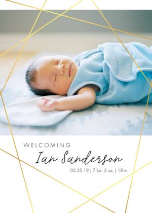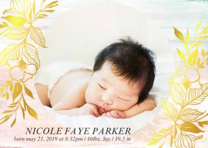 Create beautiful birth announcements using our professionally designed templates. If you haven’t yet taken pictures of your baby for a photo birth announcement, browse through our templates to get inspired. If you’re doing the photography yourself, we recommend holding your photo shoot right after your baby has woken from a nap and nursed. Be patient, your great shot will come, and we’ll have the perfect template to showcase your beautiful newborn. Personalize the template with your baby's photo and details or start from a blank card and design a birth announcement that's truly unique. Your family and friends will be thoroughly impressed with your creativity and your birth announcement will become a treasured keepsake.