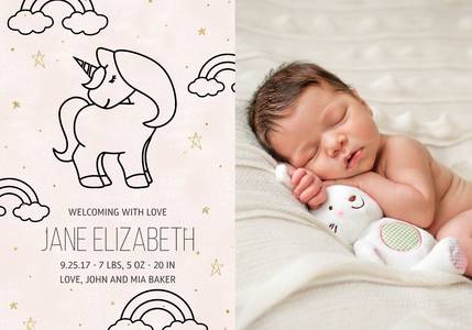 The world is your oyster when it comes to creating custom photo birth announcement magnets with Mixbook. Some of the most popular trends involve featuring a single image of your precious new baby alongside sweetly scripted text, often in neutral hues. White and gold-toned text and accents flank adorable pictures of sweet babies in their earliest moments on Earth. Timeless graphics like moons, clouds, unicorns, and balloons add a trendy pop of personality to your baby announcement. Rounded corners soften the edges of the photo birth announcement magnets, allowing you to convey the sweetest introduction with full focus on your new little blessing.What Our Customers Are Saying