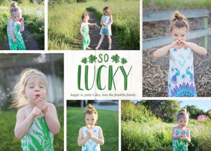 If you've been wondering how you can bring the luck of the Irish to your friends, family members, and coworkers, check out our collection of St. Patrick's Day cards. You'll be able to choose from adorable photo-based cards that show you and your family members having fun or fantastic pre-made designs you can personalize with your own message. You can make your own collage with personalized photos featuring your favorite people, choose a tailor-made card that highlights dates and times of an upcoming St. Patrick's Day party, or even select a personalized card that shares words of wisdom. The possibilities are endless when you select a custom card design or an Irish themed photo calendar from Mixbook. You can create a custom St. Patty’s Day greeting that brings the luck of the Irish to friends and family. Customize yours with a photo of your family wearing green or sporting a 4 leaf clover. You can also make a collage of pictures of couples and kids blowing kisses, then print your card with the words “kiss me, I’m Irish!” Have a little fun with your St. Patrick’s Day card and start a new Irish tradition. Or send a bit of wisdom by including a favorite Irish saying or poem. Your St Patrick’s Day greeting cards are customizable and guaranteed of the highest quality.St Paddy’s Gift Ideas and Trends