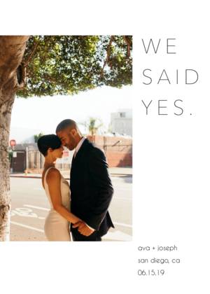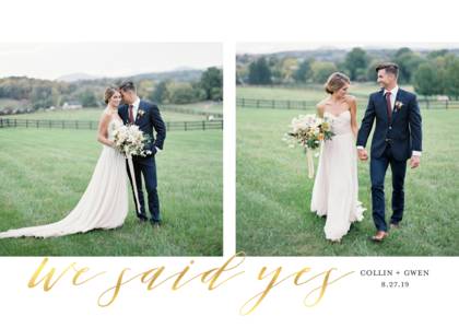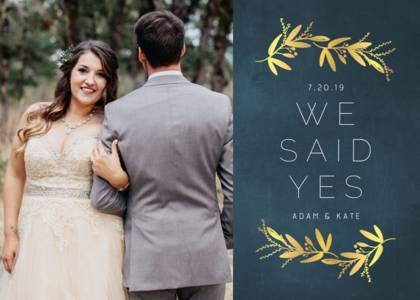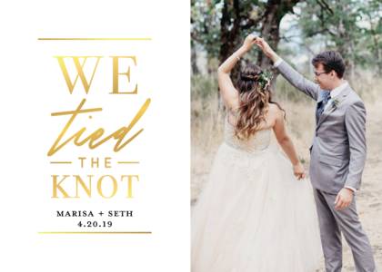 When you were young, you dreamt of finding a perfect life partner for marriage. You have done the hard part, now it's time to find your perfect wedding announcement custom photo cards with Mixbook's selection of eye-catching designs. You'll be able to choose from a variety of cards designed to showcase your love and happiness. Choose from monogrammed announcement postcards that feature your initials coupled with favorite photographs or opt for a fancier card with foil gold lettering and trim. Whether you're looking for a photo strip that shows off several pictures or you just want a single photo on your announcement, you'll be certain to find what you're looking for.