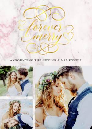 Our easy-to-use editor lets you create exactly the look you want by letting you showcase a single gorgeous photo or a collage of pictures from the big day. A wedding announcement is also ideal to send out to family and friends who couldn’t make the wedding celebration.