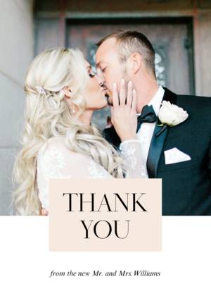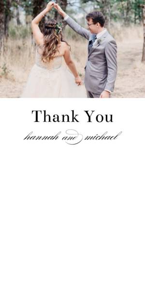 Sending a thank you card after your wedding is polite and traditionally expected. What's totally open to possibility is the style of thank you card you might choose to send. Just like your Just like your custom wedding invites, your photo wedding thank you cards top the charts in popularity, giving guests a glimpse of the happy couple living in the moment of the wedding day, honeymoon, or another special time. Personalized thank you cards for your wedding day might include your names, your wedding date, your initials, or your monogram. You might also feature a special wedding thank you card collage from your wedding day. Romantic handwriting style fonts seem just as popular as all uppercase clean text fonts. Share a kiss, an embrace, or a fun photo of the two of you as a new couple. Whether black and white or keeping in theme with the wedding color scheme, your thank you cards will be happily received by each guest who came to share in your special day.What Customers Are Saying